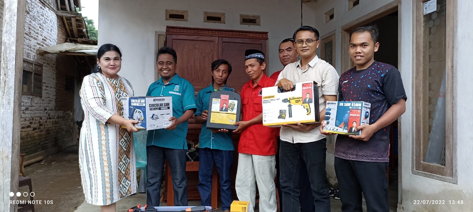 Pemberian bantuan alat tukang pada kelompok masyarakat Al Ishlah di Desa Karangpring, Jumat (22/7).